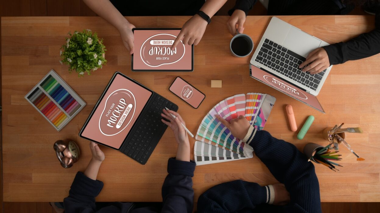 High‑res mockups and soft proofs. Add bleeds, trim marks and colour profiles; fix print risks before press